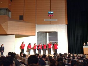 『君が代』『伸びゆく大地』斉唱は生演奏でした。生演奏で歌うのは初めてでしたが歌の苦手な私としては歌いにくかったというのが正直な気持ちです。でも素晴らしい演出だと思いました。