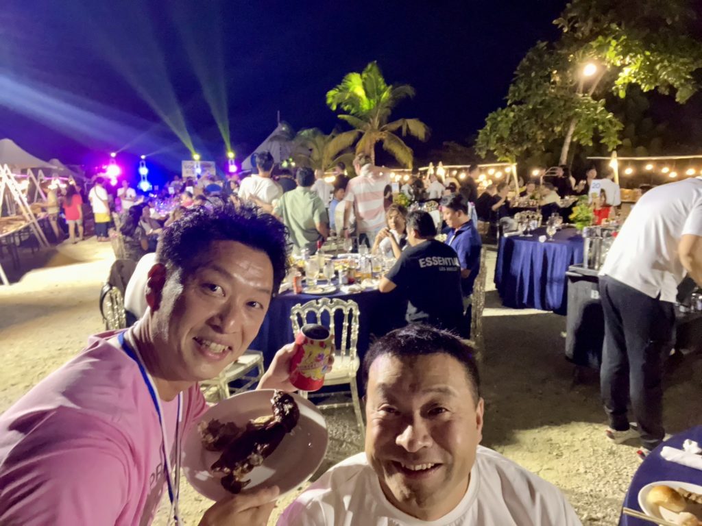 そして、ビーチパーティーへ。愛知県連からも多数参加して見え、瀬戸YEG高橋会長とパシャリ。