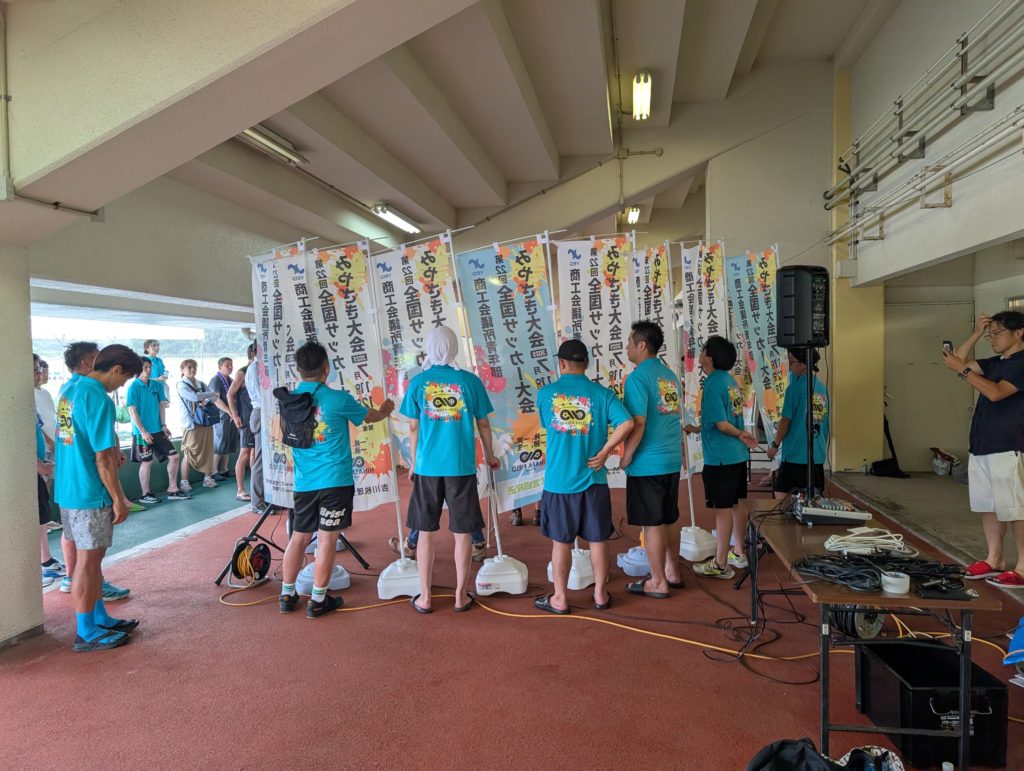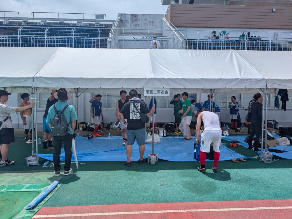 と知り合いにも段々と会いながら会場入りしました。ちょうど雨も上がり気温も上がってまた暑い。てかサッカー大会こんなに出場してるんだねー!