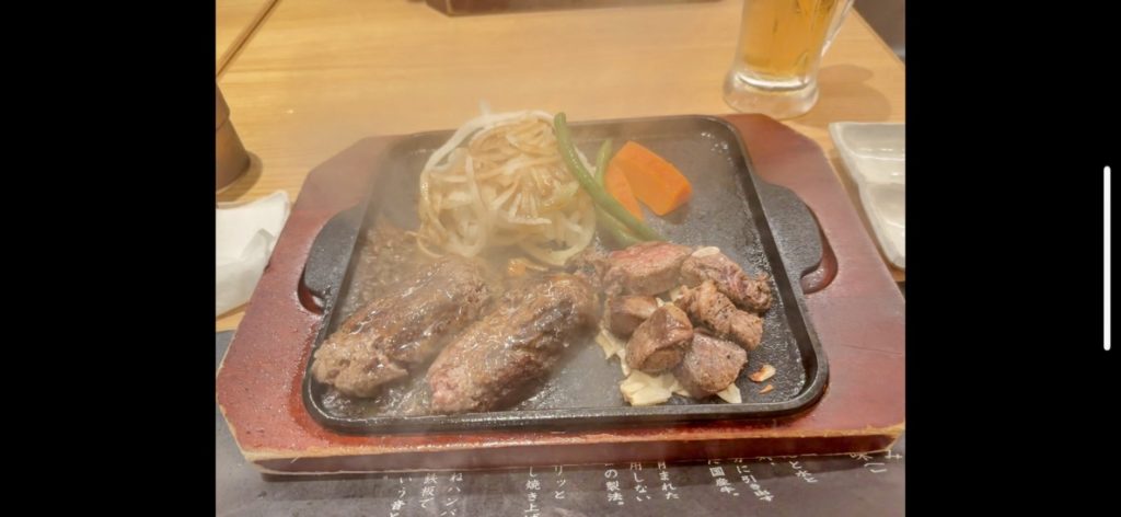 道子さんおすすめの「平家の郷」。ハンバーグ屋さんです。アッツアツの鉄板で運ばれてくる感じ。