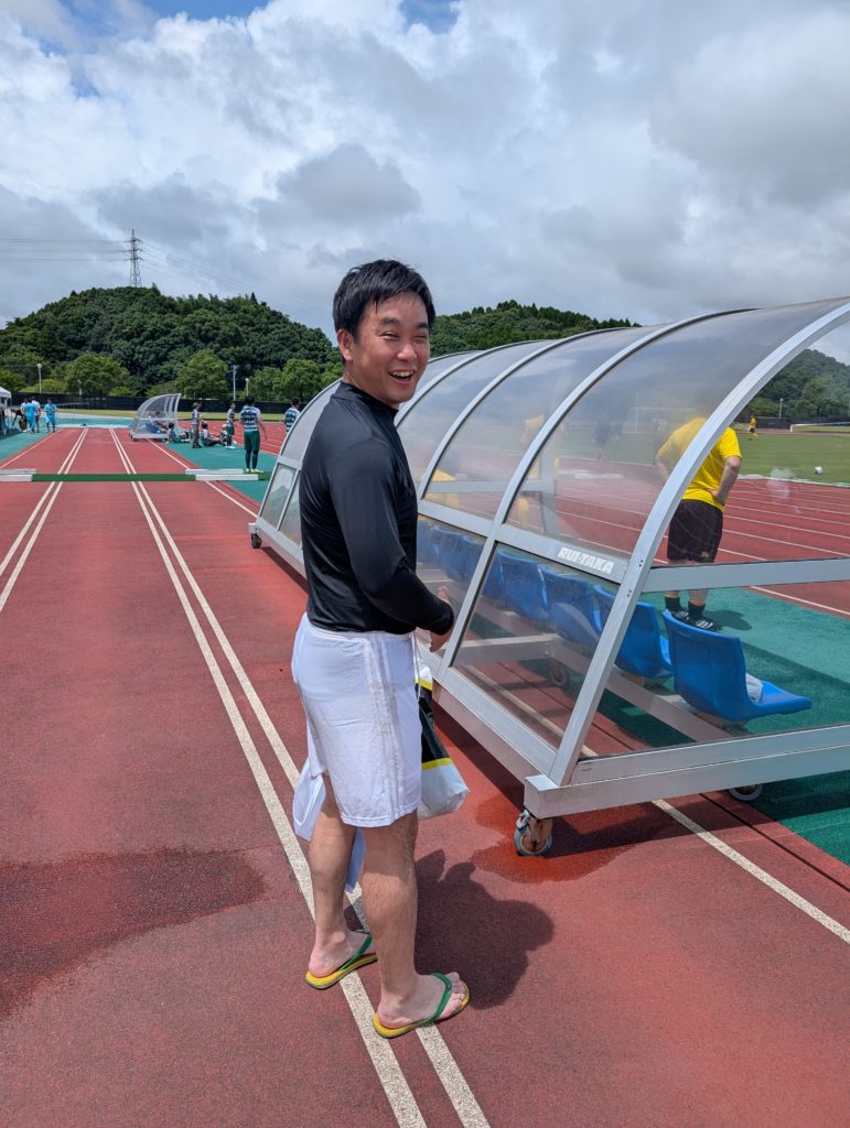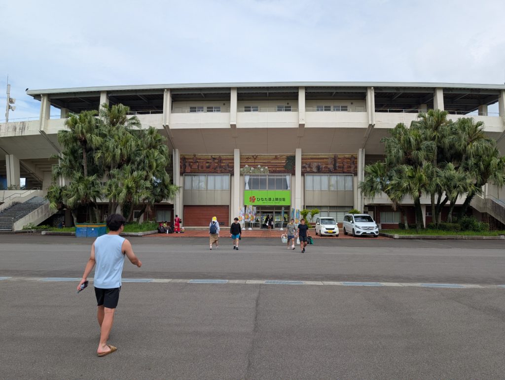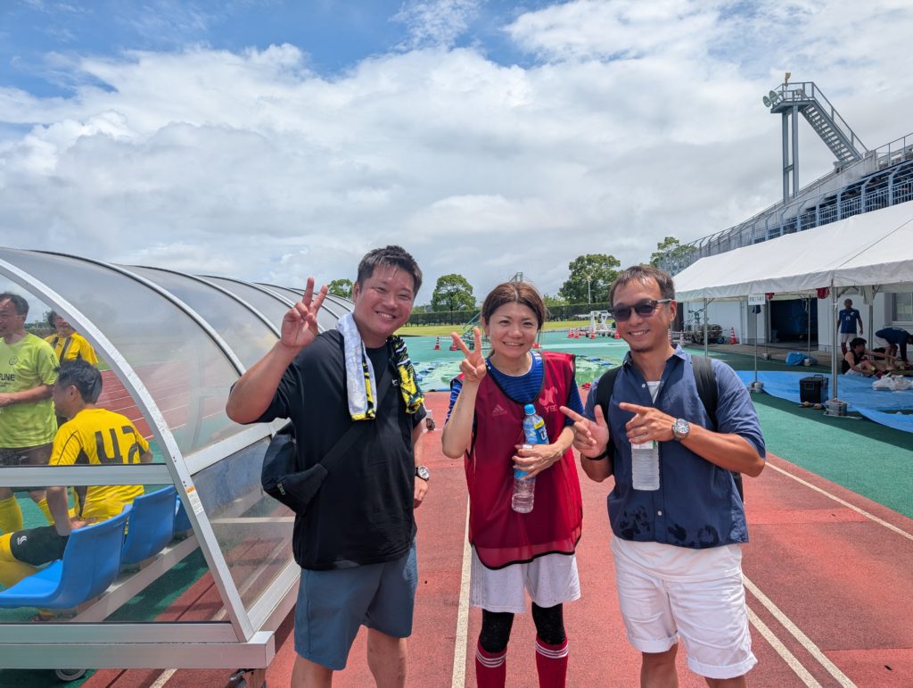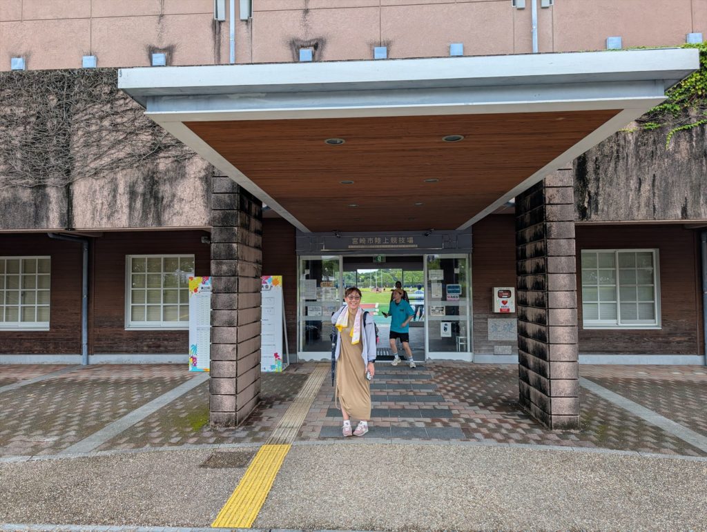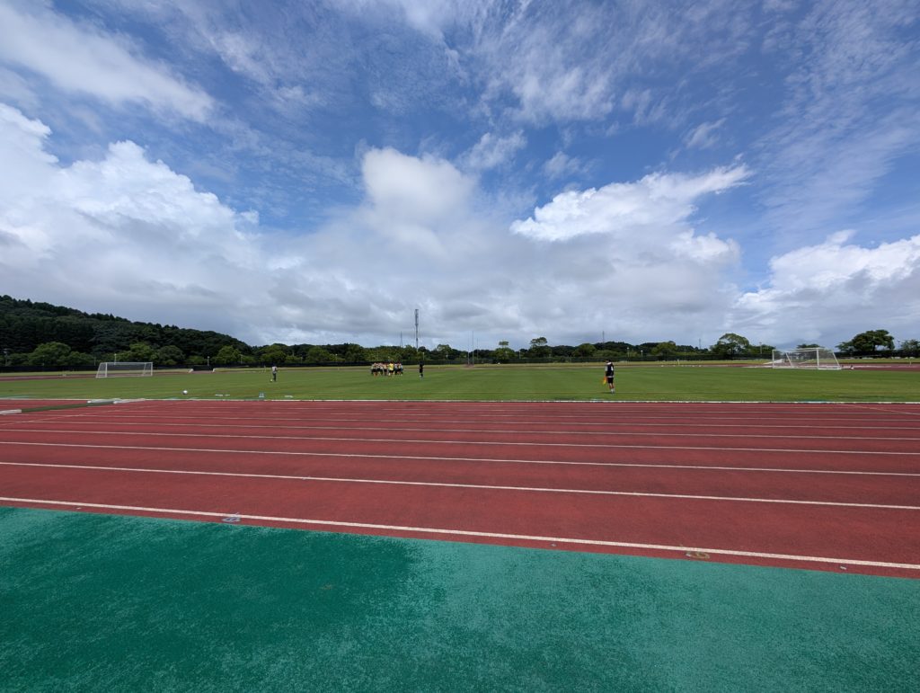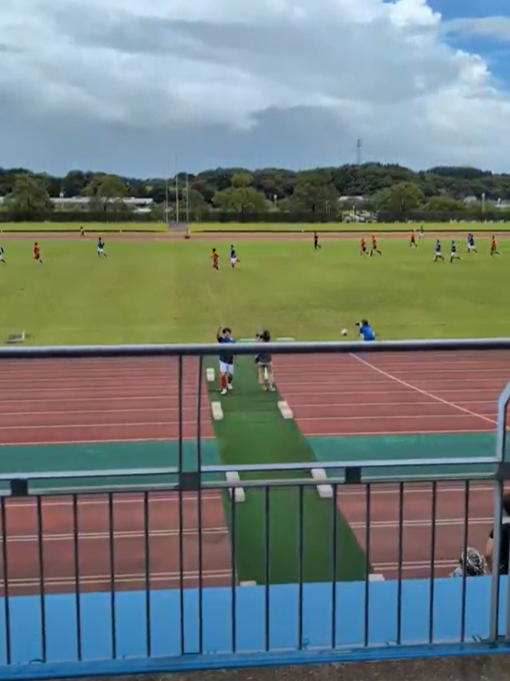 そして会場に向かいます。場所は「生目の杜陸上競技場」。1時間くらい試合時間あると思ってたら15分で終わり。広い会場で何試合かしてて、着いたときには試合終了(笑)。