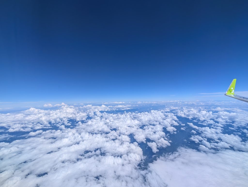 30分本を読んで30分寝るフライト。朝のビールがよく効きます(笑)。