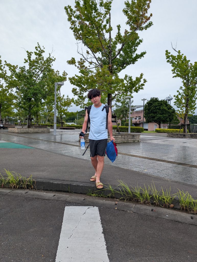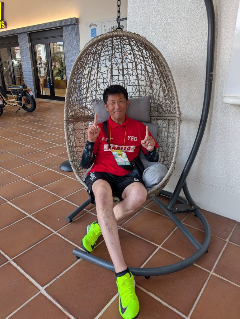 そして会場につくと9:30~の選手が駐車場を歩いています。なんと11:00からに変更になったと。雨が土砂降りだったので時間変更したのかな。