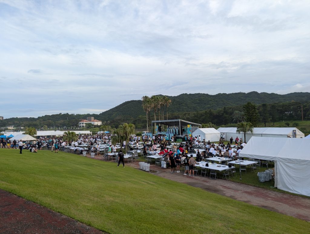 と軽く腹ごしらえも済ませてバスで懇親会場に移動します。場所は「こどものくに」。海のすぐそばにある大きな広場です。