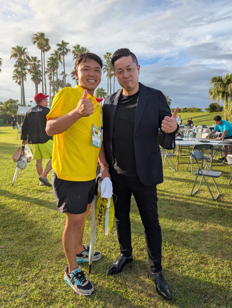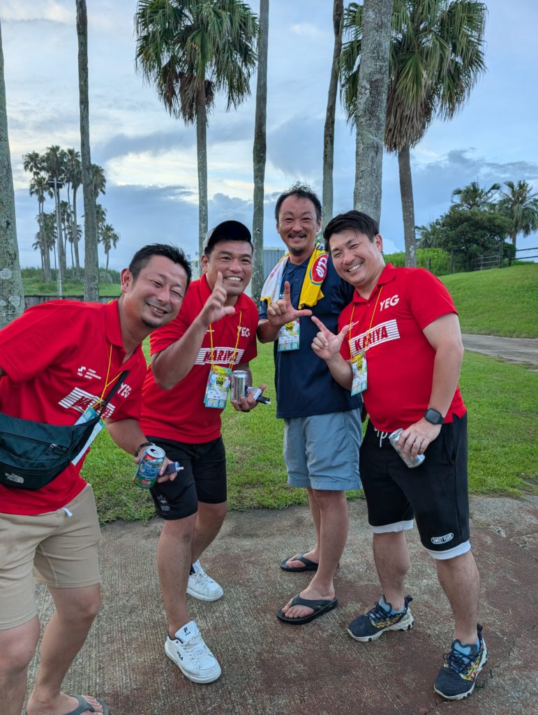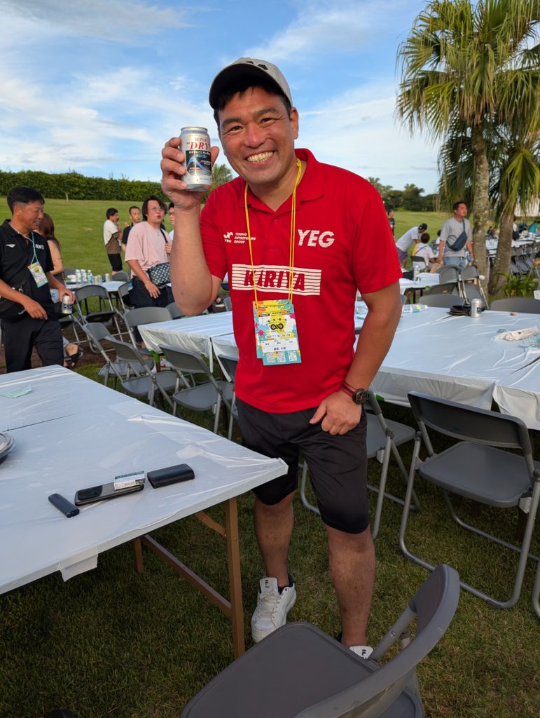 こちらのコワモテさんは宮崎県連日向YEGの会長さんです。昨年日本YEG事業でセブに行った際に「セブの現実を知るツアー」で自由昼食タイムがあったのですが、一人で参加していた私は知り合いがいなくて困っていたところ、偶然喫煙所でスーさんに会い一緒に一杯やった思い出があります(笑)。