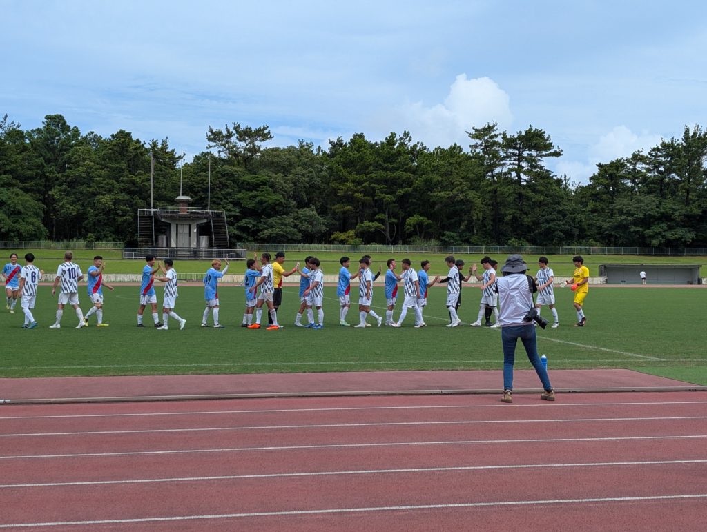 そして雨も上がり会場入り。またいつ降るかわからないような天気でしたが、それよりも芝がビシャビシャでボールが転がらない。選手のみんなも苦戦していました。