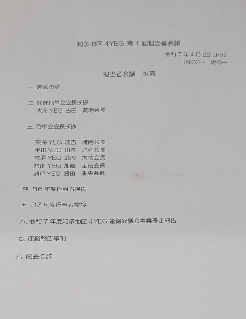4/22 「知多地区4YEGプラスワン」引継ぎ会