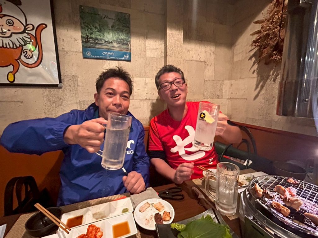 そんなこんなで中締めに。おいしいお肉とビールをいただきました!あとは担当者さんにお任せします。たしか9月で日程調整だったような・・・(笑)