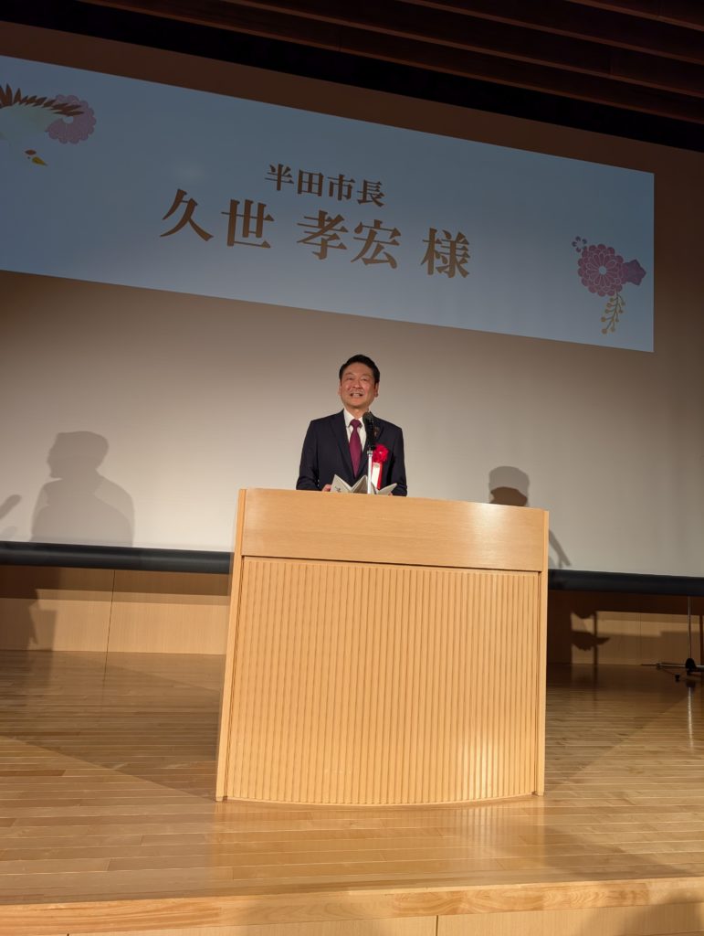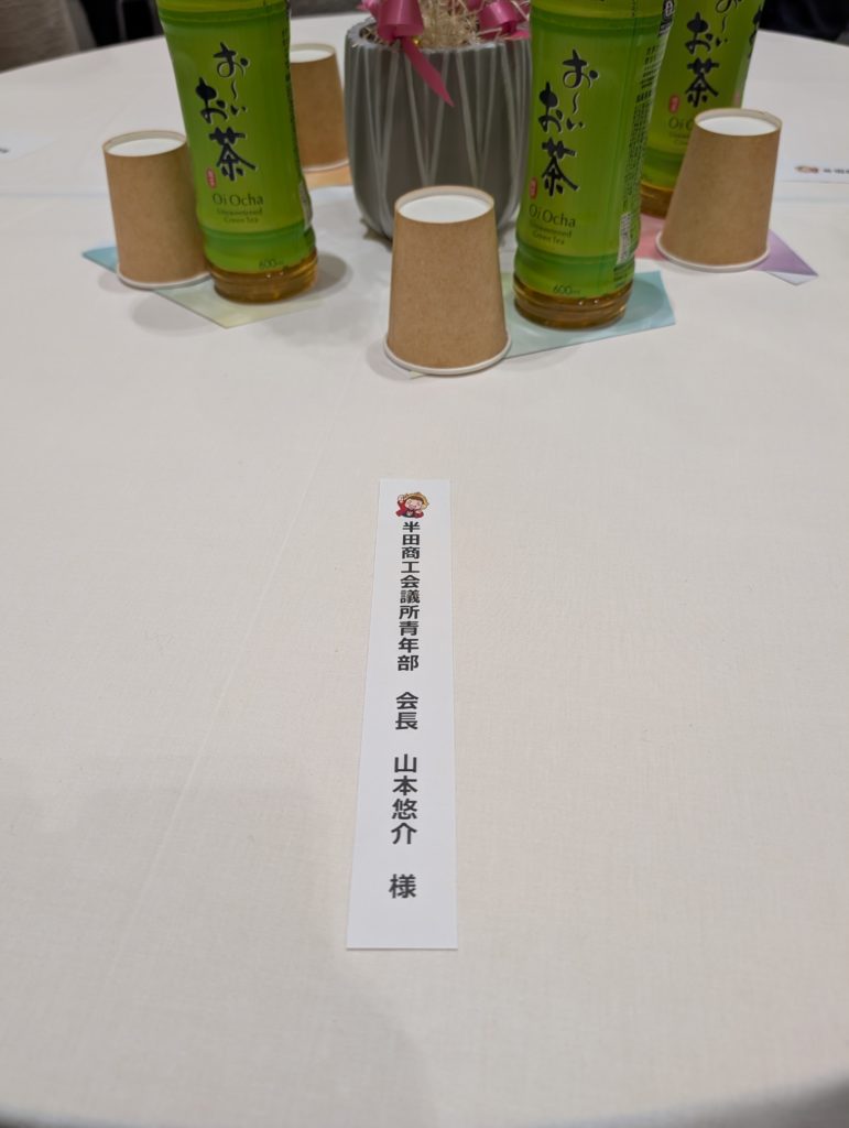 え!?ど真ん中の最前列席!?同じテーブルには松石会頭・久世市長・愛知県連女性会会長・半田女性会会長の酒井さん。私こんな扱いを受けていいんでしょうか・・・と思いました。