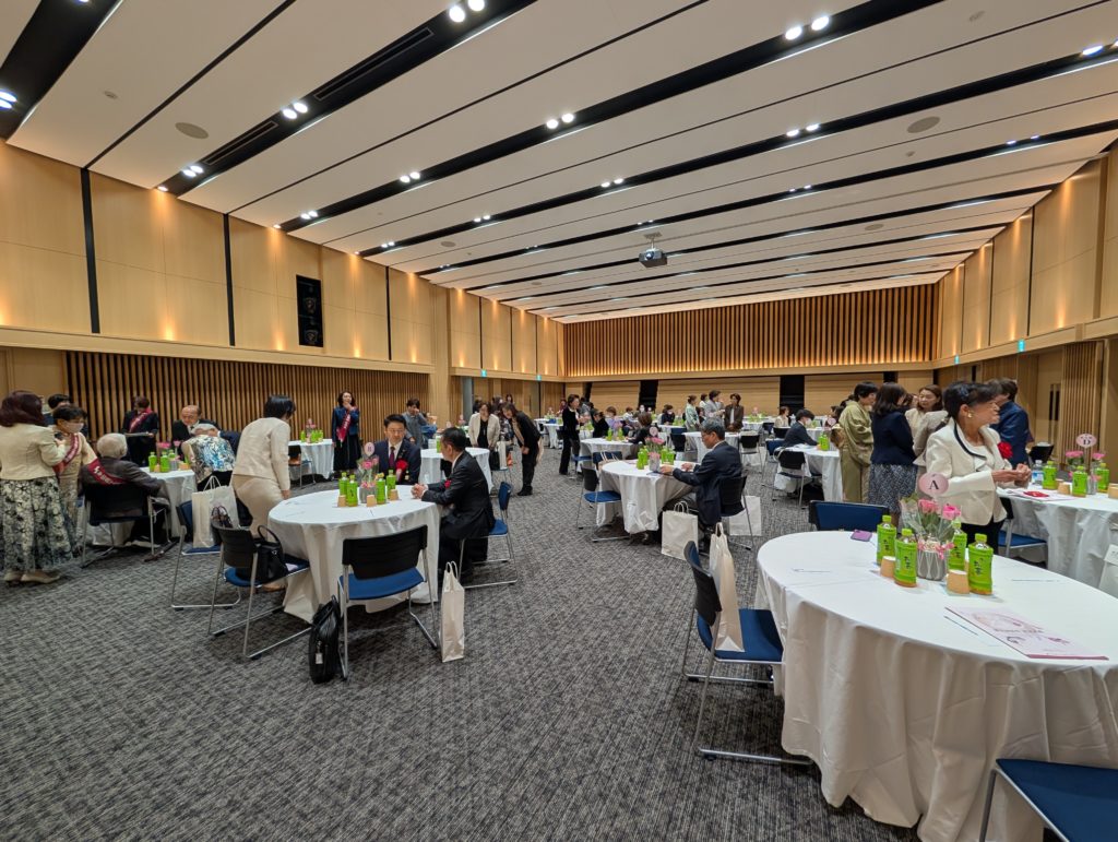 そしてホールに入ってみると多くの女性がお待ちかね。ちょっと圧倒されちゃいました(笑)。しかも他の参加者さんをまったく知りませんでしたし、来賓として招待していただいていたのも松石会頭・久世市長・中埜副会頭・小柳専務・愛知県連女性会会長と私。