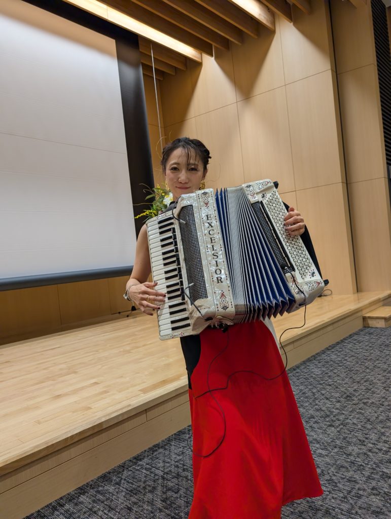 どうも松石さんの娘さんと同級生らしく、音楽という繋がりもあるのでよく知っているそう。ピアノで数々の賞を受賞しながら、アコーディオンという道に進まれたそうです。