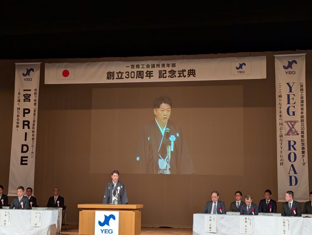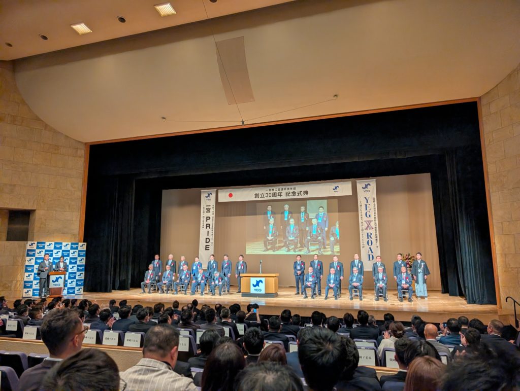 そして早速式典へ。今日の会場はアイプラザ一宮。懇親会もできるハコがあっていいね!