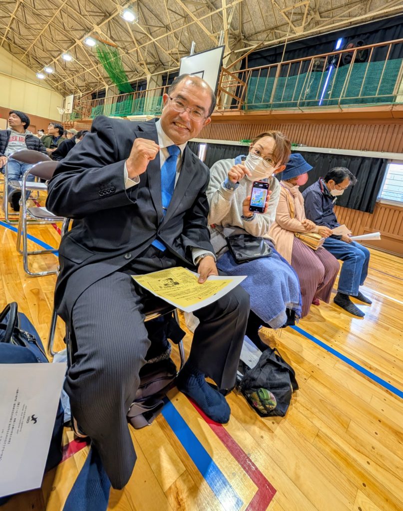 でも最前列も市民の方が座っていて、3人で「ホント関心が高いんですね」と話していました。すると笠井さんが「講師の福和先生の講演は何度も聞いてるけど、国の防災顧問みたいな権威ある方なんですよ」と。