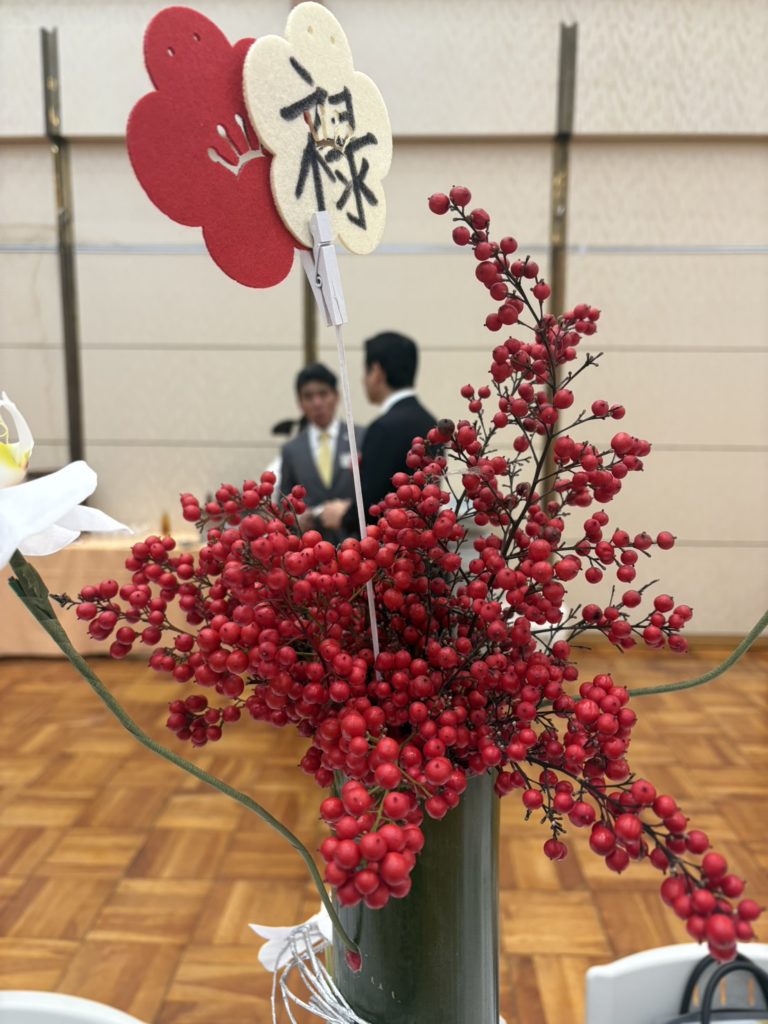 ということで新年式典はおしまい。この後は場所を講堂に移して「賀詞交歓会」です。来賓の中には昨日お会いした人もたくさんいて、「お互い連日おつかれさま」とお声がけいただきました。
