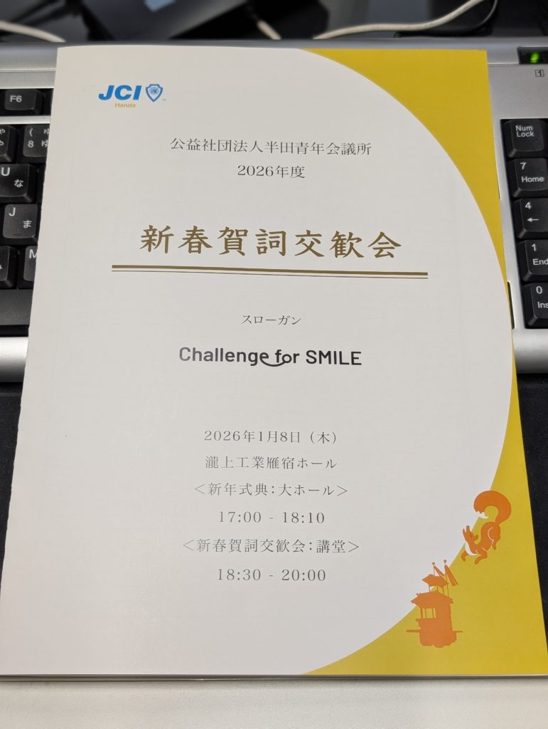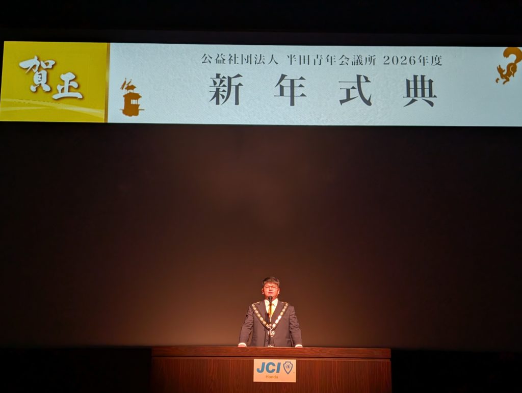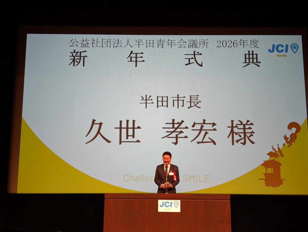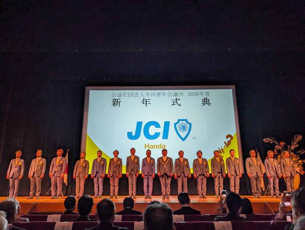 さて、本日は表題の件。昨日のブログで紹介したとおり、2026年度半田JC理事長となったゴウキくん、専務理事となった戸嶋くんにご招待いただき行ってきました。