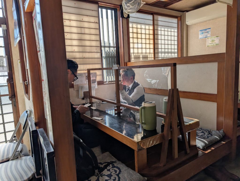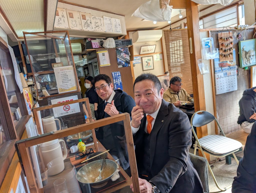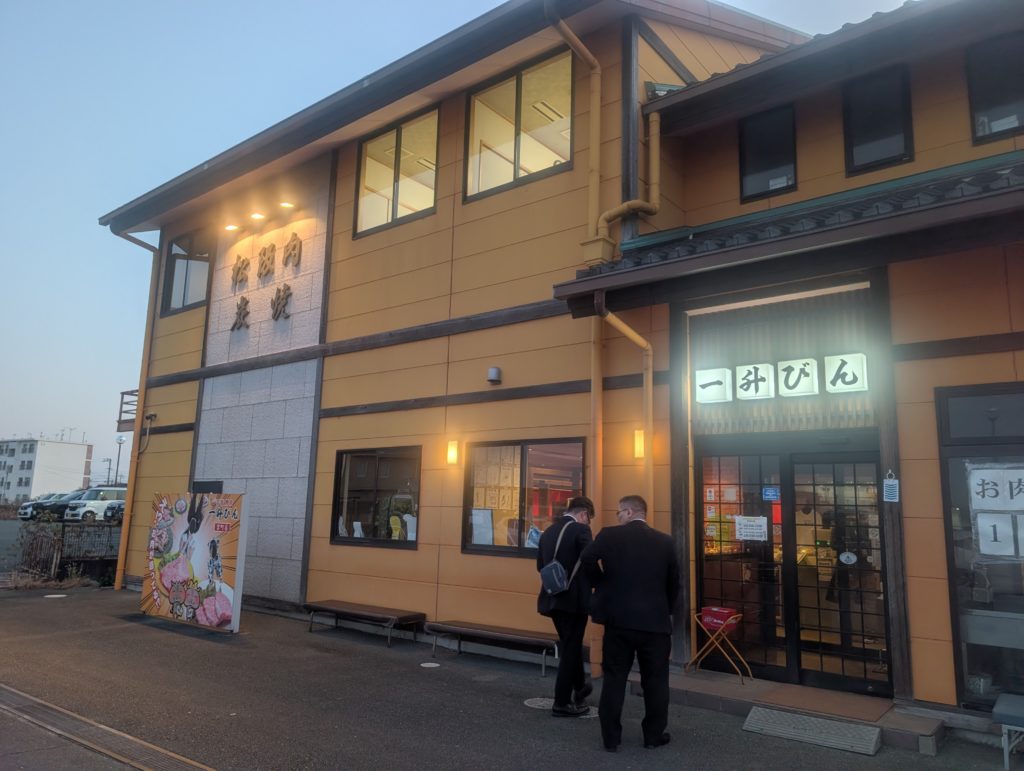 そして講演も終わり、ヒロモト号で松阪YEGメンバーおすすめのお店に到着。しましたが外まで待ちの人が!まだ17:00なのに!?30分待ちとのことで諦めてこちらに移動。