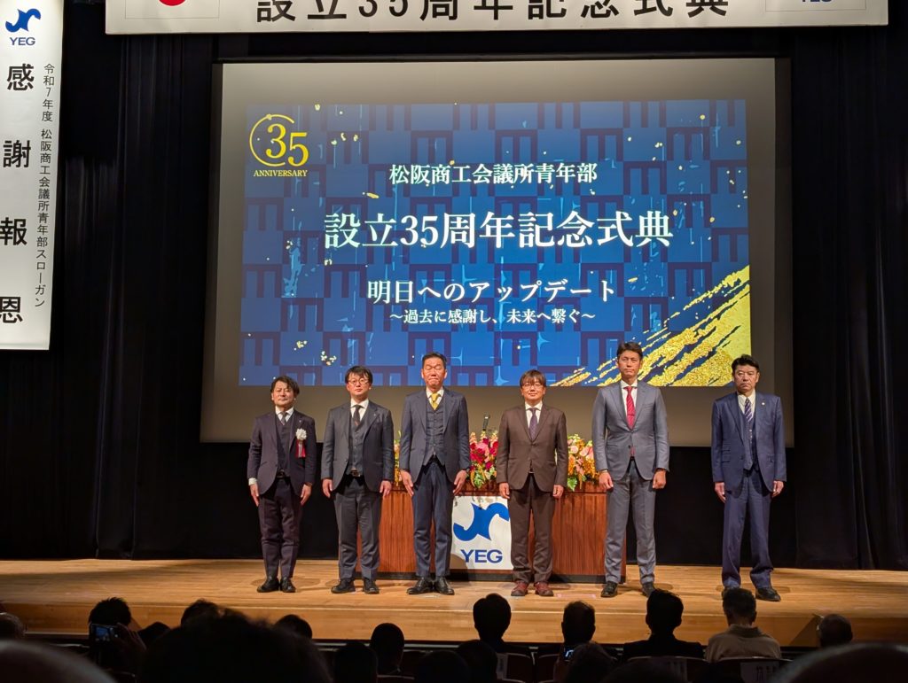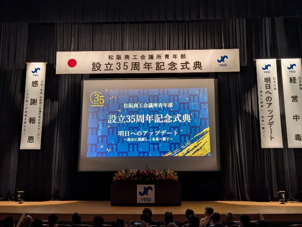 式典の流れは大体他と同じ。歴代会長の紹介や松阪YEGの歴史を見せていただきました。面白いなと思ったのは写真にある過去5年間の会長紹介と表彰。コロナ真っただ中からどのようなテーマでどのような活動をしたか。例えばいち早くオンラインを活用した会長とか、交流活動を活発に行った会長、会員拡大に力を注いだ会長とか、改めて振り返ってみてどういう年度だったのか紹介されていました。