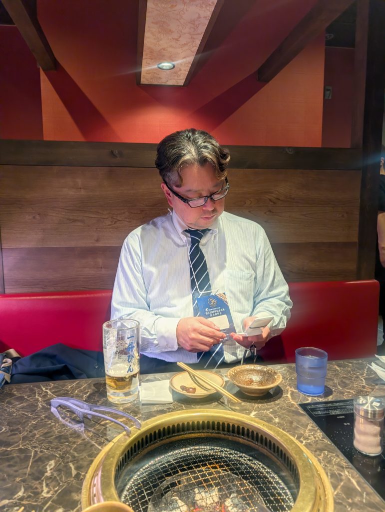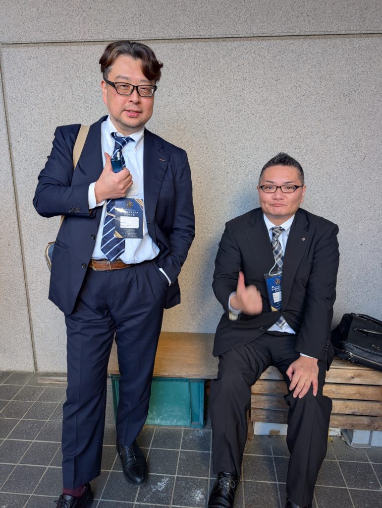 こっからは暫し休憩。3人でタバコ休憩に行くと見慣れた顔もチラホラ。この後は記念講演の予定でしたが、準備が必要だったのか同会場で20分くらい休憩時間がありました。しかも講演会後は祝賀会なんですが、そちらは2時間も時間が空くってことでどこの店で休憩するか相談しました。ケン兄が松阪YEGメンバーにリサーチしてね(笑)。