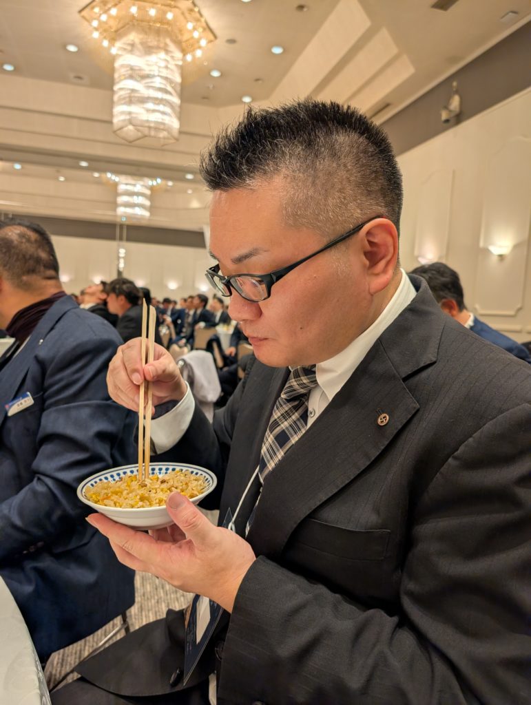 とそんなキャラバン隊のみなさんをみながら私はハイボールをもらいに行ったり、ヒロモト君は食事に精を出しておりました。瀬戸の高橋さんに「フードロスをなくそう」とか言われながらチャーハン食べさせられてましたから(笑)。