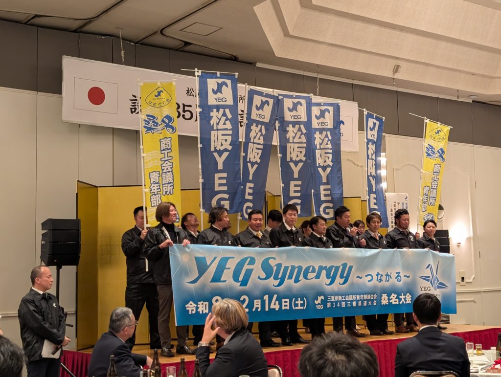 これは違う記事でも載せた方がいいかな。今日は松阪YEGさんの35周年だし。とか思いながらもキャラバンは続いていきます。お次は三重県連の桑名大会PR。