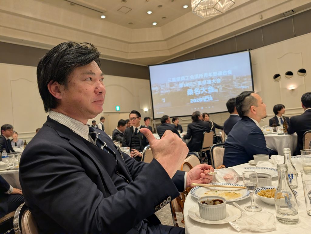 自走で来ていたケン兄に連絡してみると日本出向メンバーで昼食に行くとのこと。「なら後ほど~」ということで二人で行きましたが、同期会長にも会えてほっこり。しかもめっちゃ美味しかったです!そして腹ごしらえもすんだらいよいよ会場の「松阪市営嬉野ふるさと会館」へ。