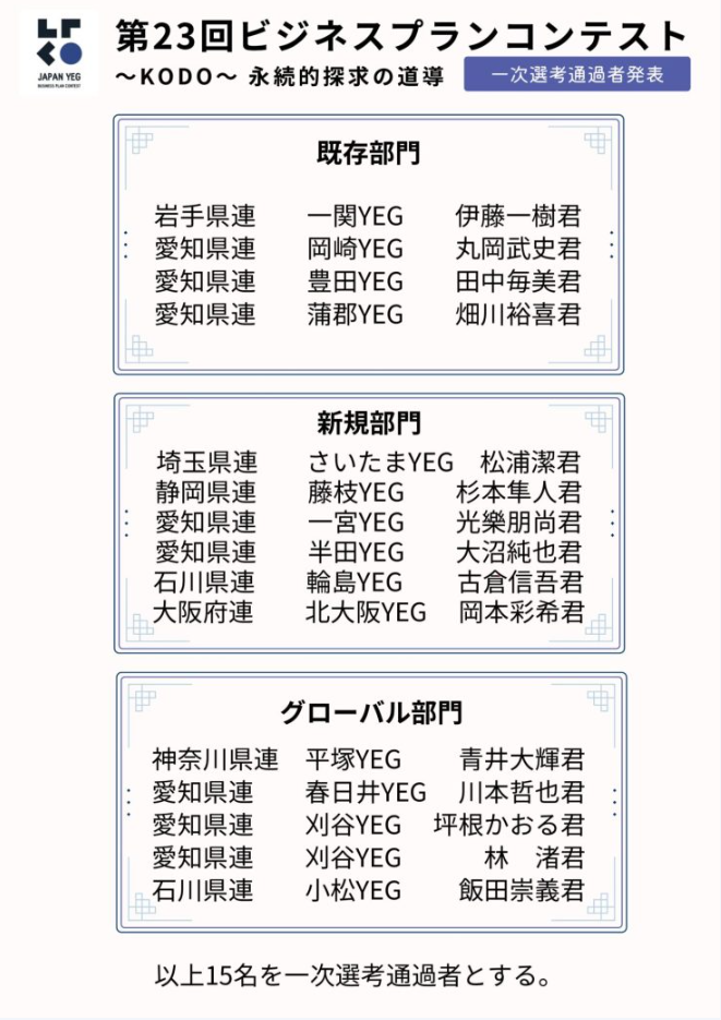 更になんとこちらも!ひそかにエントリーさせてもらっていましたが、2次審査も通過したそうです!全国大会では半田YEGダブル受賞もあるかも!卒業生のお祝い+BPCとYEG大賞まであるなんて、ぜひみんなで全国大会は応援に行こうね!