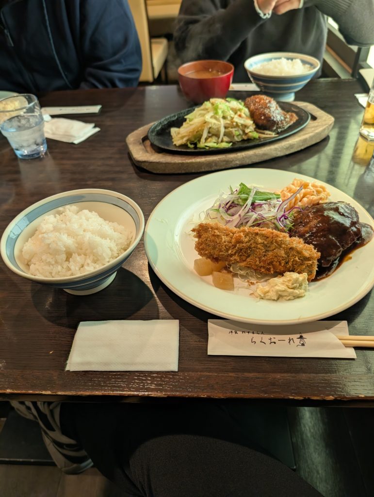 そして本日のランチは会場近くのハンバーグ。中華かハンバーグを選べと言われましたのでこちらをチョイスしました。まぁまぁの混雑店らしいですが今回はすんなり。とってもおいしかったです。