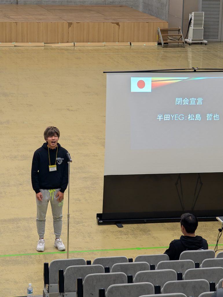 ここからは閉会セレモニーへ。表彰は懇親会で行うとのことで発表だけありました。そして閉会宣言はテッチャンから。