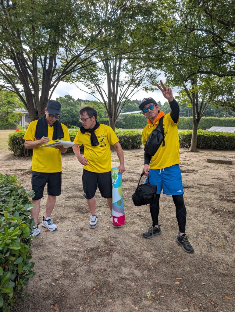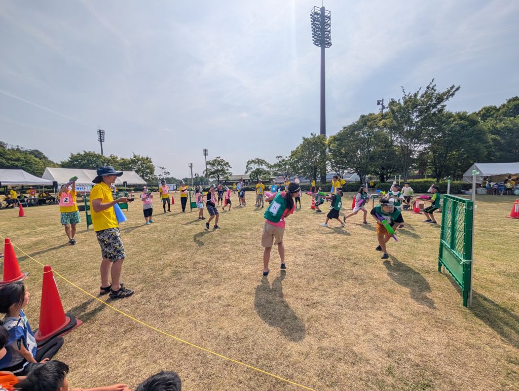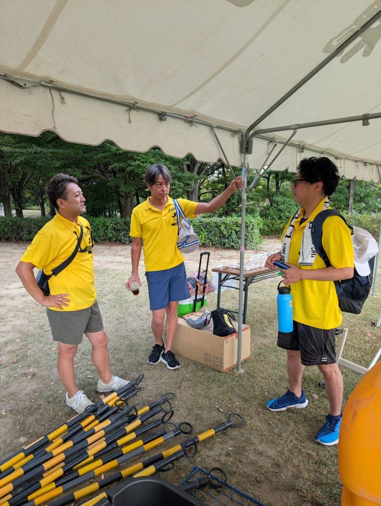 集合は8:00。寝坊しましたが、迎えに来てくれたヒロモト君と一緒に会場の「半田ぴよログスポーツパーク(半田運動公園)芝生広場」に向かいます。