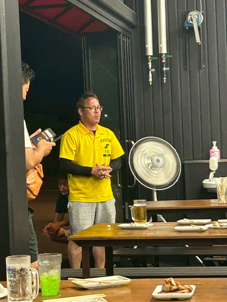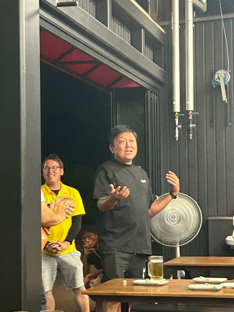 そして乾杯へ。またタツオくんがいなかったので、本日は坪井くんから。