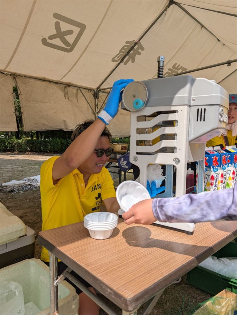 今回熱中症対策が必要ということもあり、かき氷の提供・飲み物の提供・そしてお昼ご飯はカレーを提供しました。ゲームに出ていない間も子供たちは楽しそう!