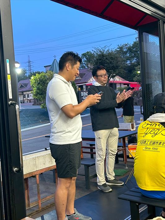 「名簿の番号で選ばれましたので今日の盛り上げ役をやってもらいます」と。どーいうこと!?と思ったら、3つある焼き台の「焼き係」に任命されました(笑)。