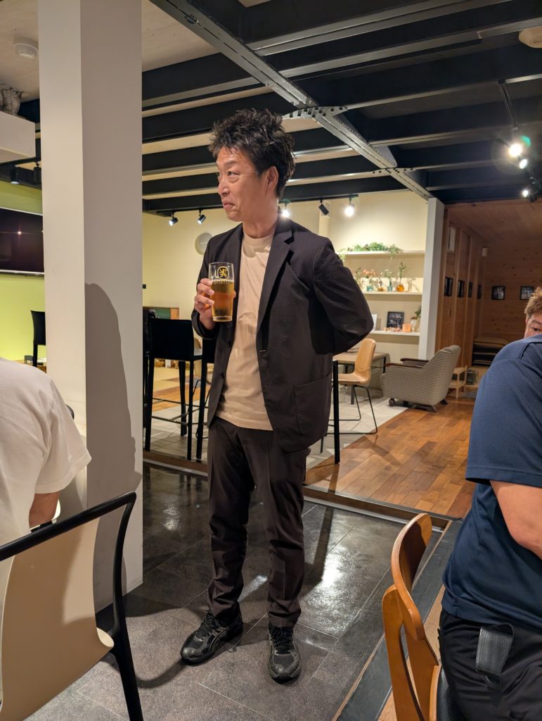 乾杯はもちろんタツオ直前。「オレ!?」みたいな顔してたけど、そりゃそうでしょと(笑)。