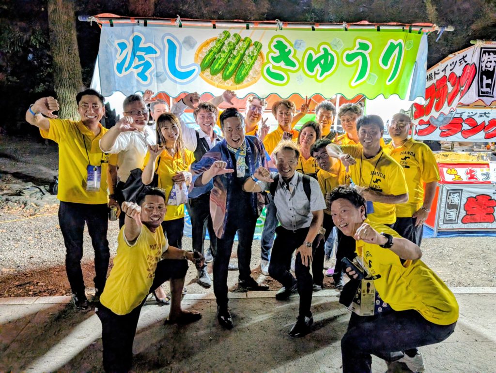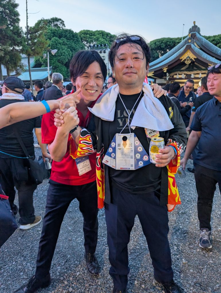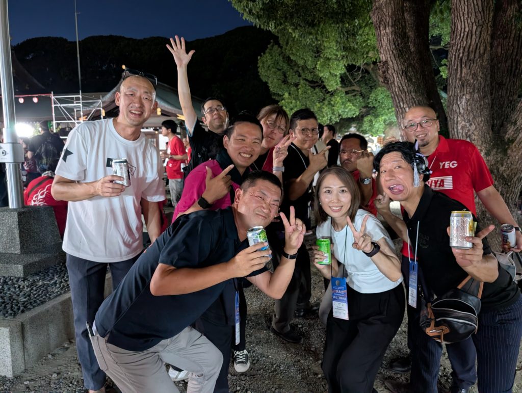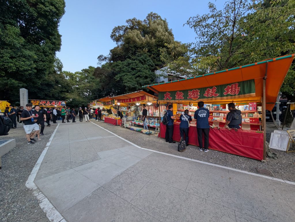 歴史ある立派な神社に屋台もたくさん配置。しかもYEGメンバーは無料というメッチャ面白い設え。