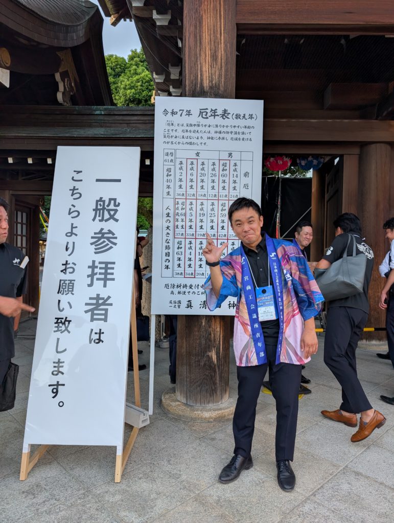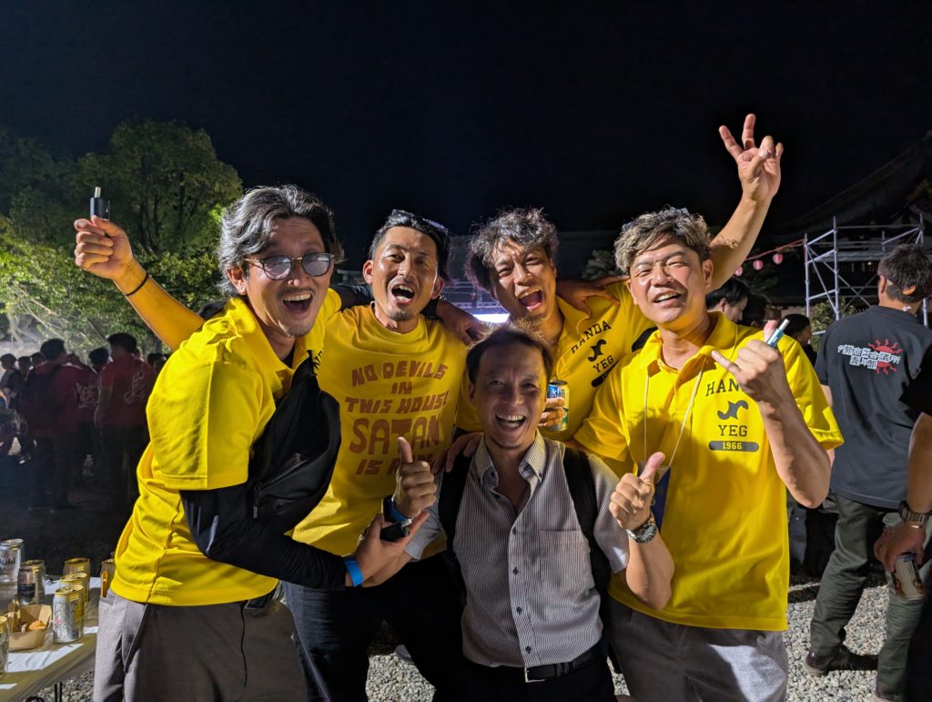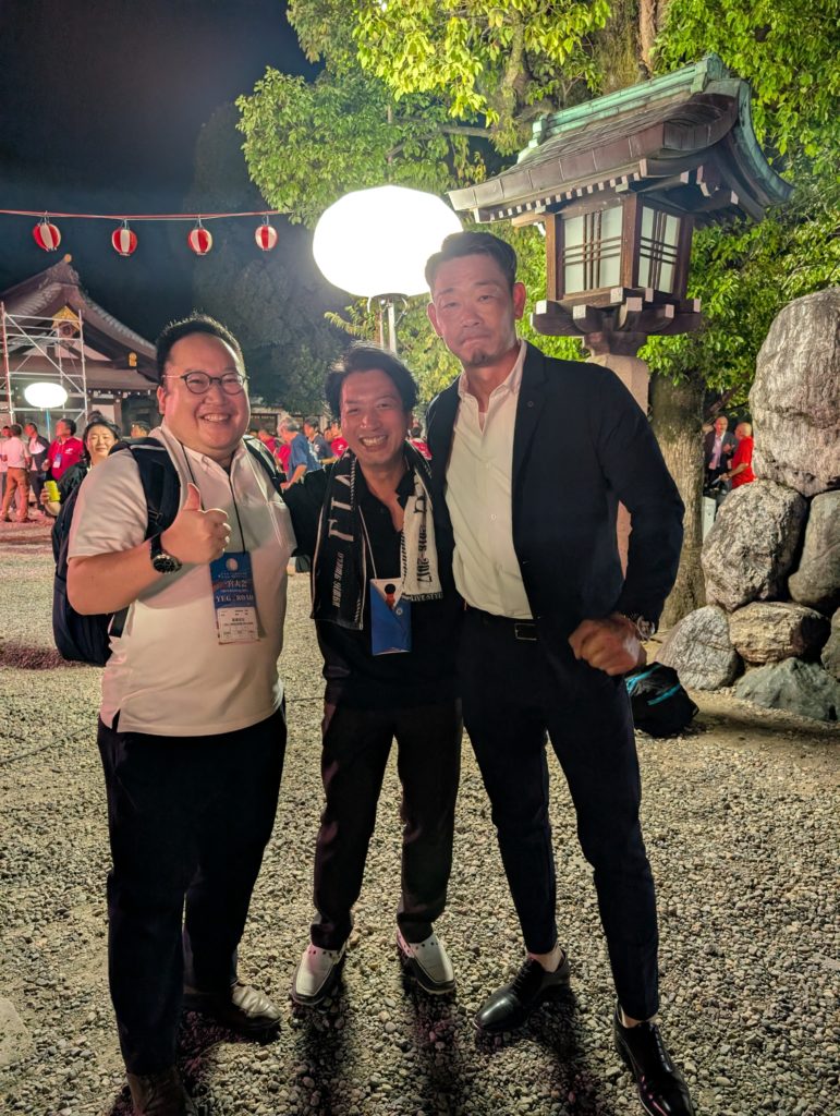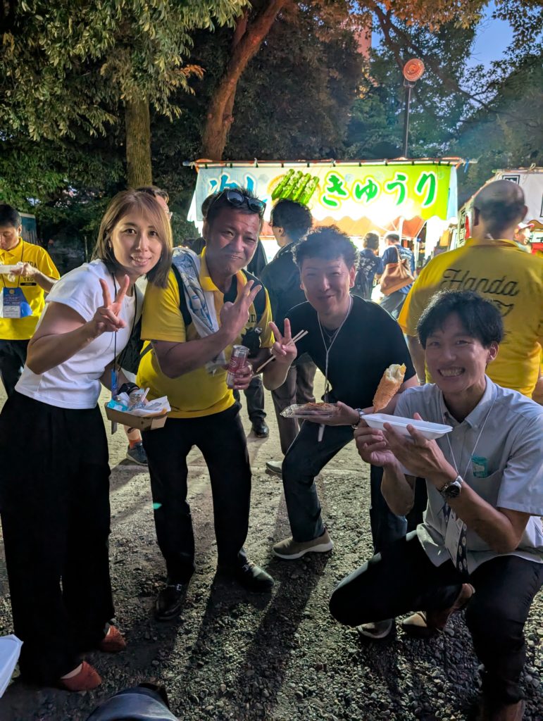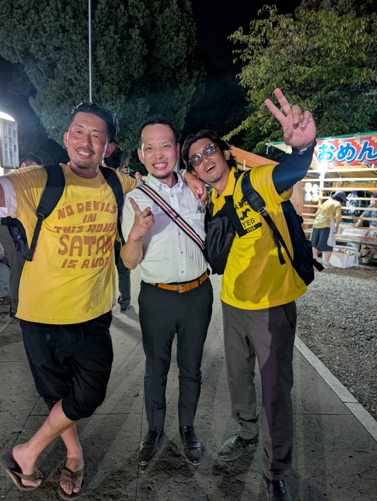 歴史ある立派な神社に屋台もたくさん配置。しかもYEGメンバーは無料というメッチャ面白い設え。