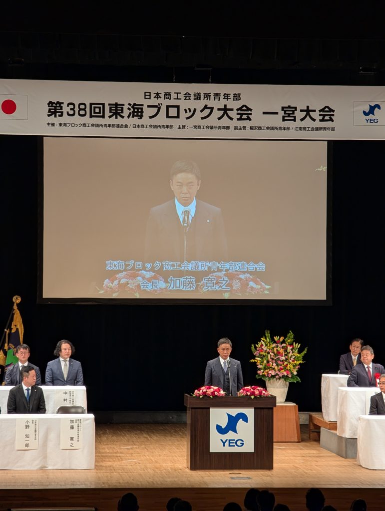 そして東海ブロック大会会長の加藤くん、日本YEGの知一郎会長から挨拶。これもよかった!