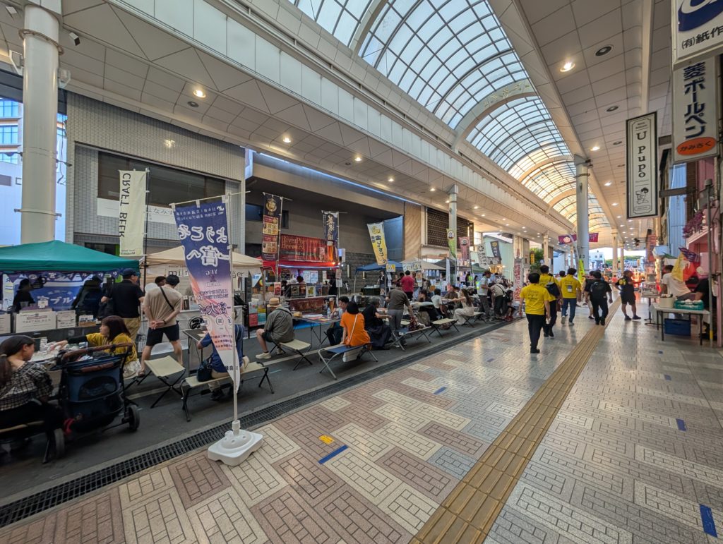 そして17:30頃、懇親会場に徒歩で移動。商店街は歩行者天国になっており何やらイベントも行われていました。