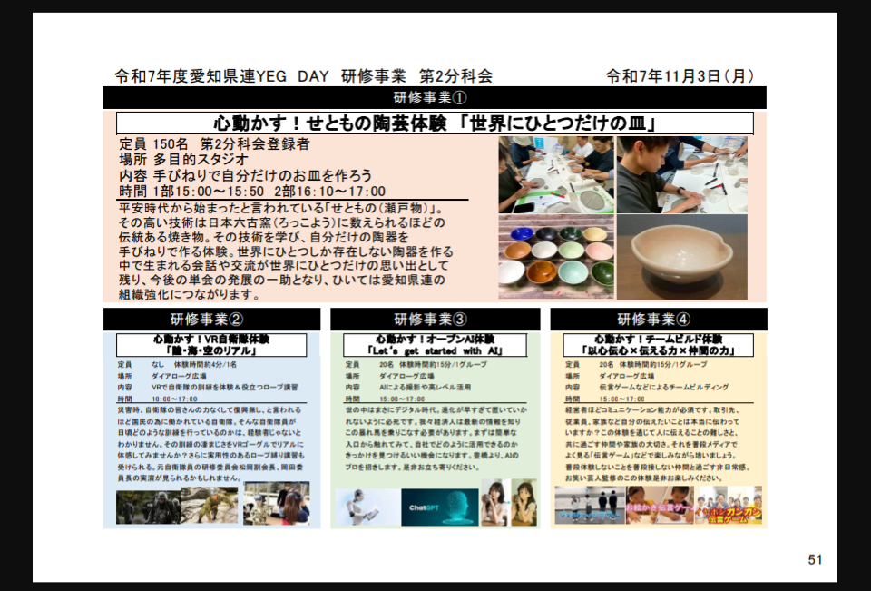 こちらでも簡単に紹介すると、分科会が1~3まであり内容は以下のとおり。