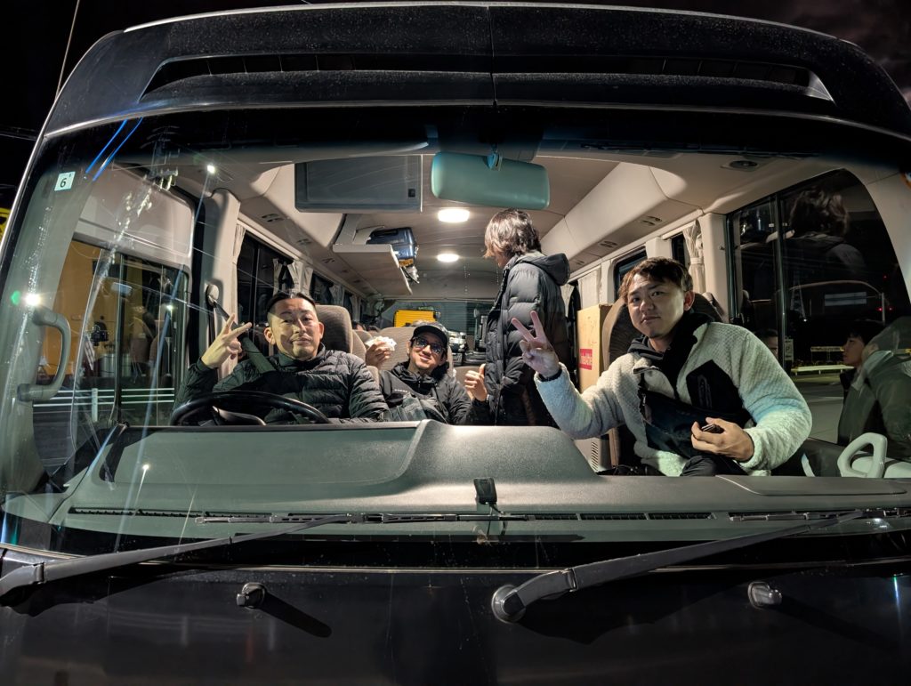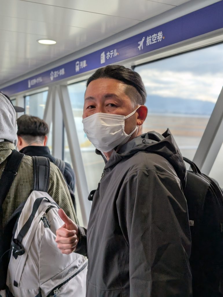 集合は半田商工会議所にAM3:00。今回は直行便ありきのスケジュールなので、サルさんにマイクロバスを運転してもらい関西国際空港まで向かいました。