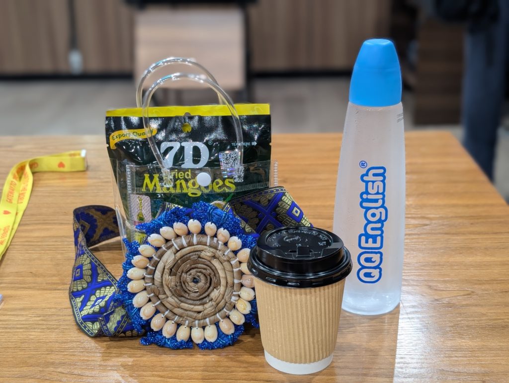 そのままマクタンニュータウンの「QQイングリッシュ」さんへ。こちらの建物は24時間セキュリティがいて入退館をチェックしていますが、到着してみると全員にこんな歓迎まで!