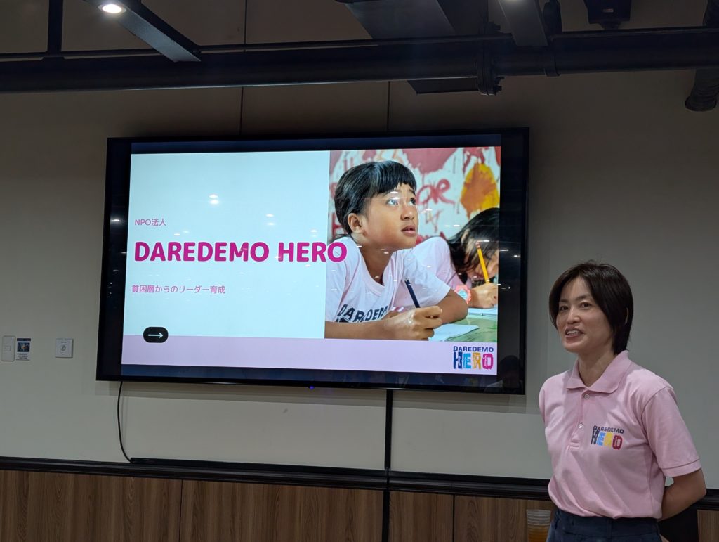 ということでQQイングリッシュさんの見学はおしまい。先ほどの研修室に戻ってお次は「NPO法人 DAREDEMO HERO」理事長の内山順子さんから活動についてお話ししていただきました。