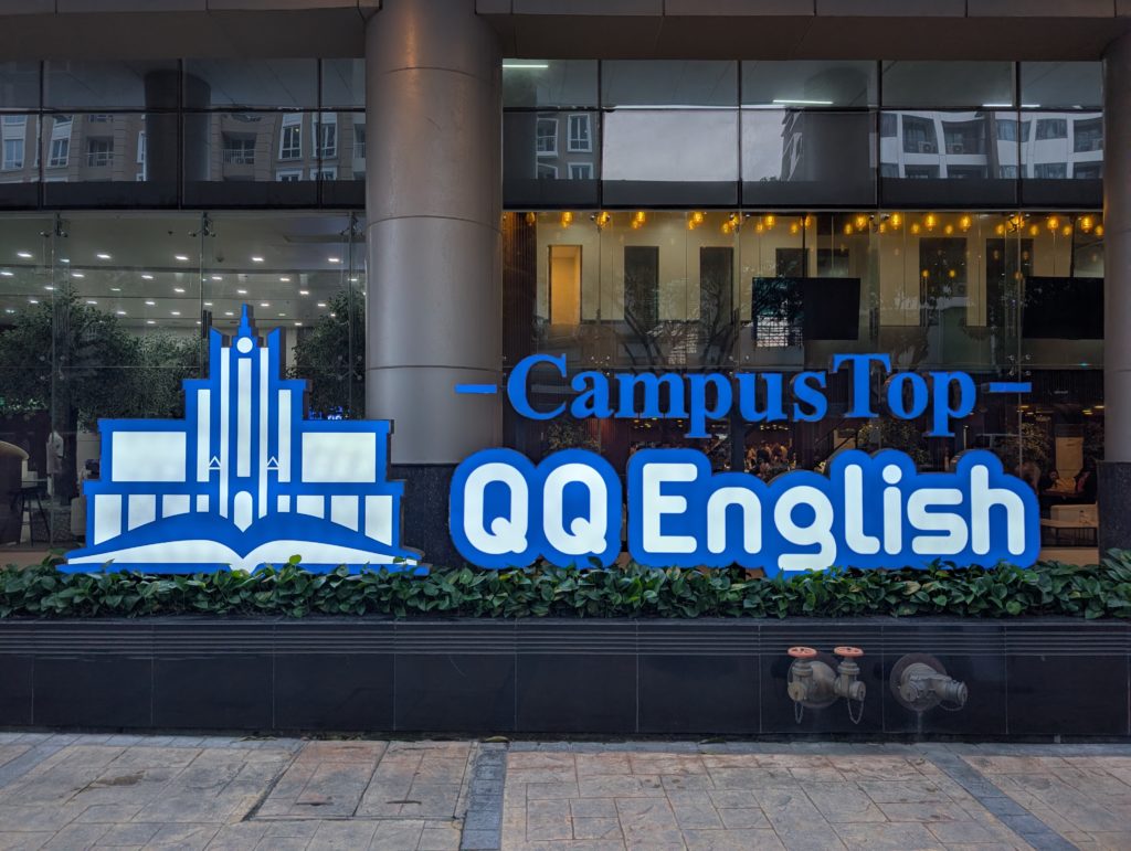 そして一旦スーツケースを置かせていただいて研修用の部屋へ案内してもらいました。先にお伝えしますがこの建物すべて「QQイングリッシュ」さん。14F建てで世界一デカい英会話教室です。