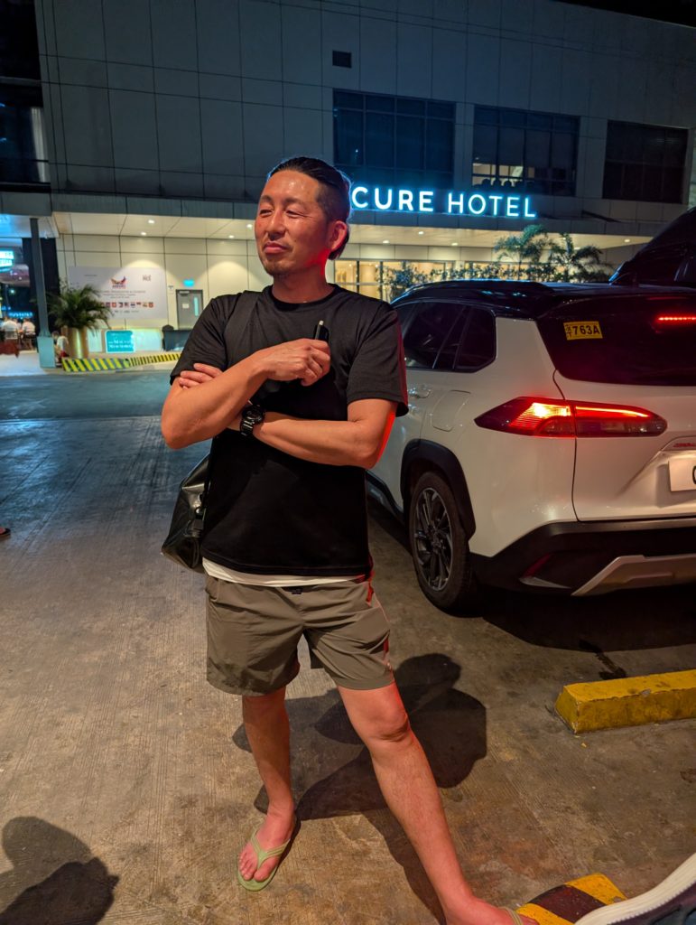 今回は二人部屋って聞いてましたが、なぜか一人部屋で取れたそう。ということでチェックインできたメンバーから部屋に向かい、再度フロントに集合です。なぜかってここからミートボール君とコータ君が経営している「EN」というマクタンの飲み屋さんに行く予定だからです。