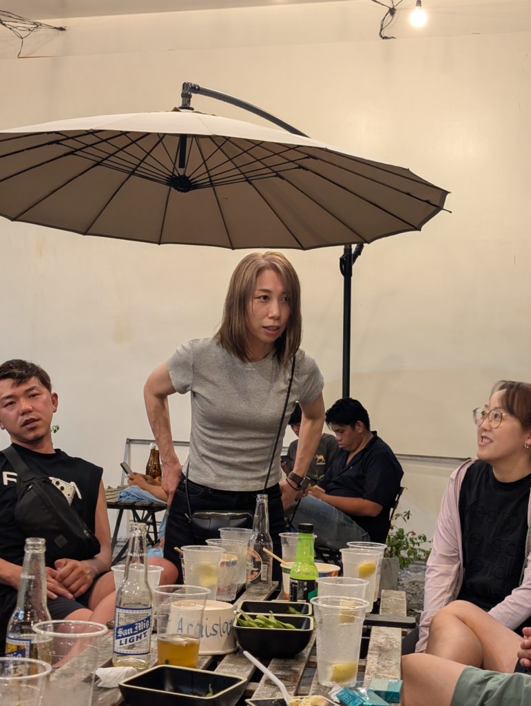 ということで早速カンパイ。ご発声はWAOJEセブ支部の岡本さんです。なんと岡本さん、知多市のご出身。現在はセブに住んでいて日本人の英会話留学をサポートしています。