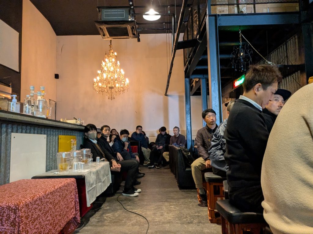 今日の会場は「KEN‘S BAR」。パーティールームになっていて、そのまま懇親会に移行できる会場です。私は自宅の近くなのでとっても楽ちん。って言ってもヒロモトくんに拾ってもらいましたが(笑)。