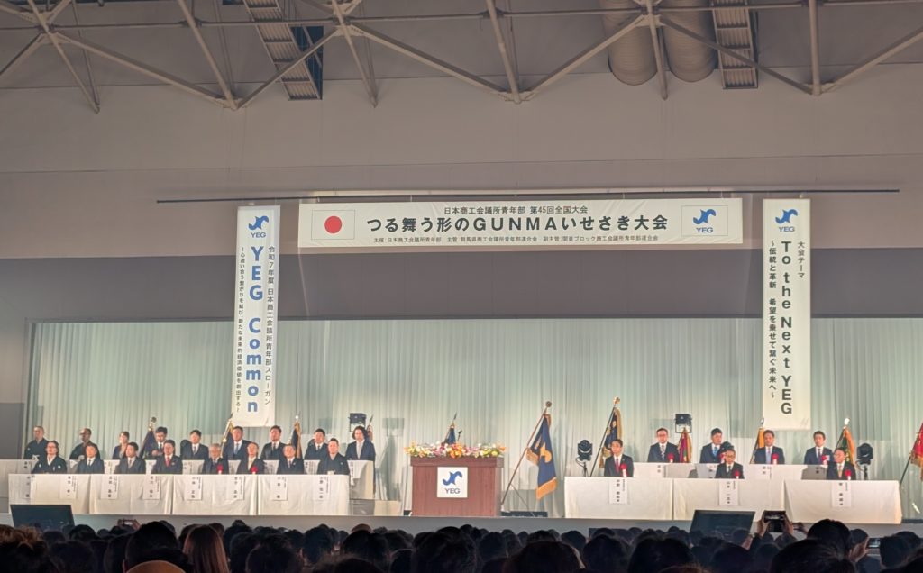 そして記念式典が進んでいきます。BPCの発表とYEG大賞の発表は午後から。ドアクローズとなっていましたが、お昼を跨いでの式典なので休憩時間に外の物産展で小腹を満たしました。