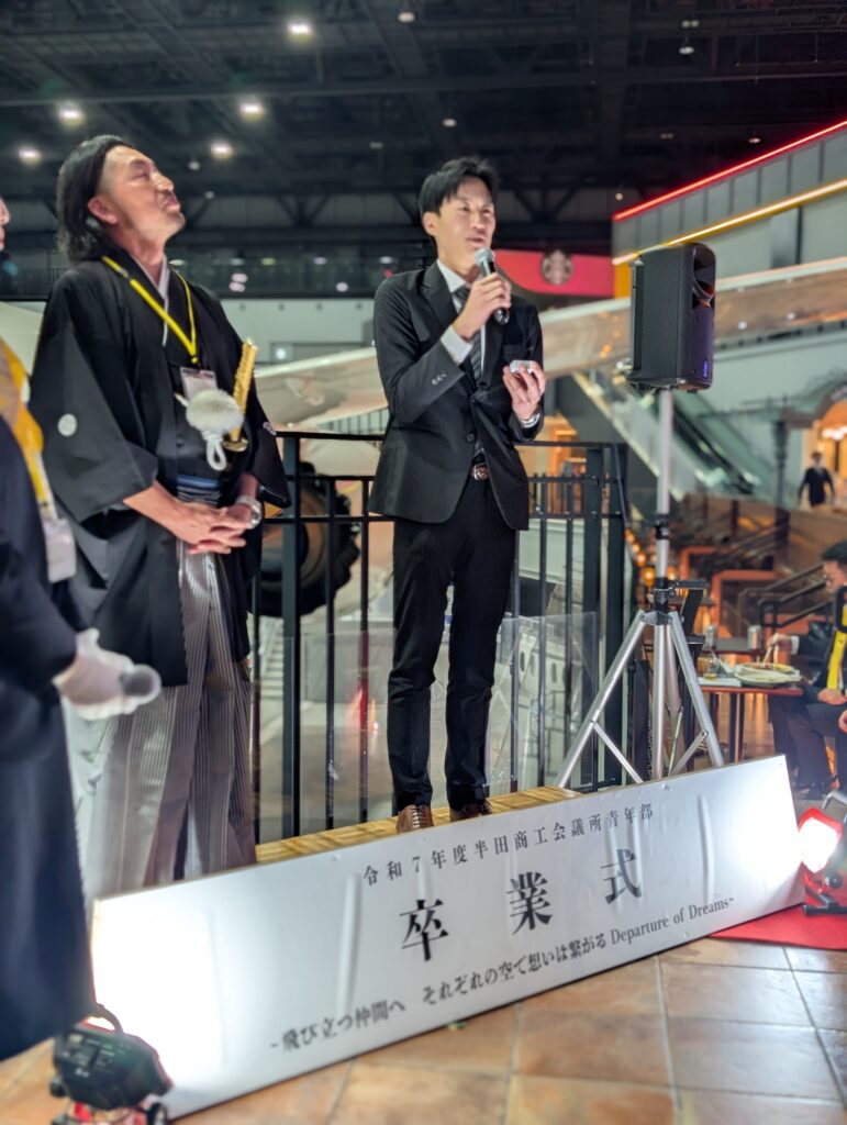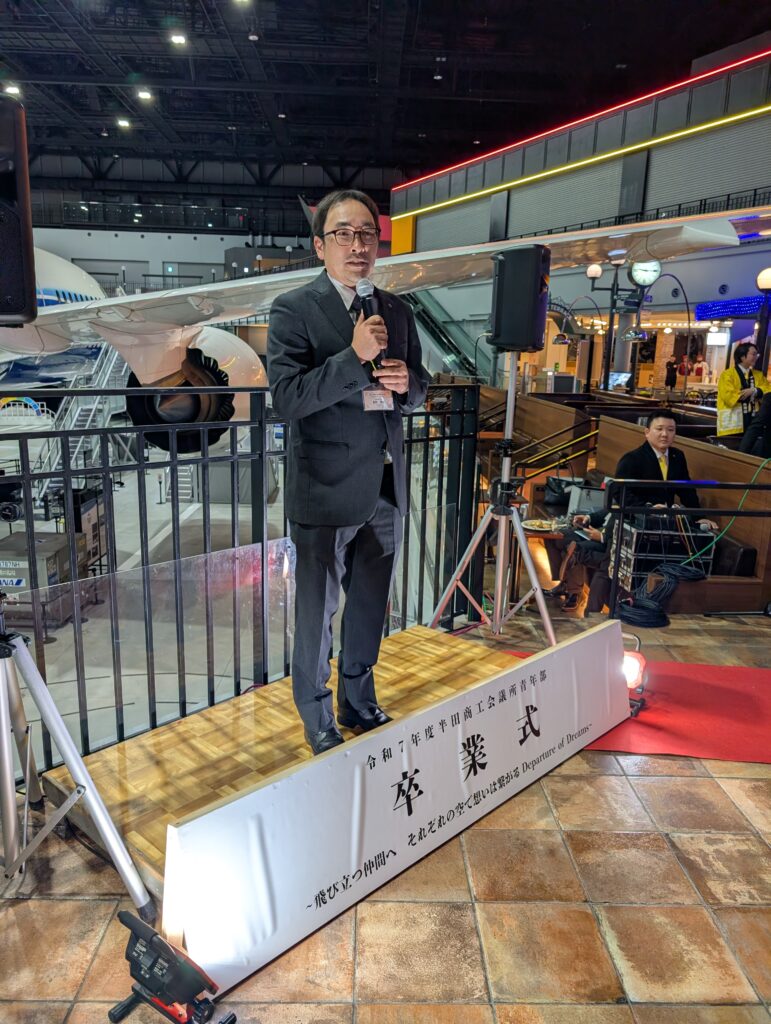 そして私の挨拶とミオコさんの委員長趣旨説明。ホントはその場の雰囲気でお話しようと考えていましたが、当日の午後に「やっぱり卒業式の挨拶はスピーチだな」と考え直し、みなさんへのメッセージをお伝えしました。