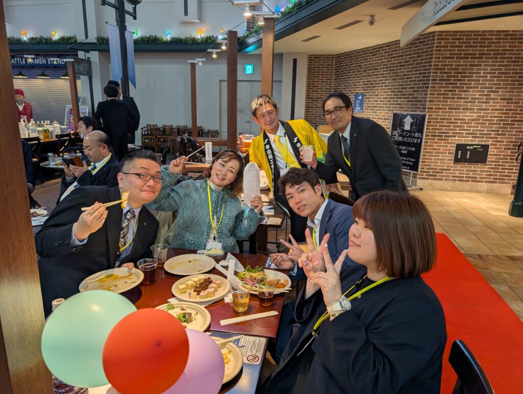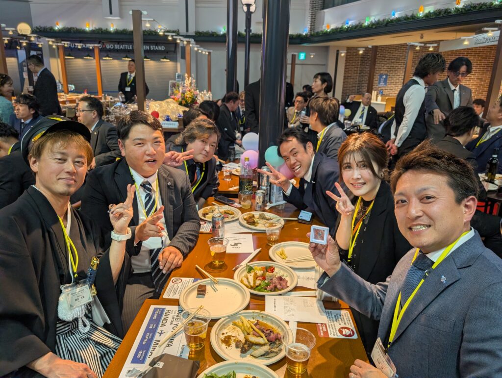 ユカリさんからも感謝の言葉を伝えてもらい3本締めでお開きに。この後は報告連絡事項、最後は監事所見です。あ、そうそう。半田YEGの会長法被と会長記章もこの場でユカリさんにお渡ししました。あとは頼んだぞ~(笑)。