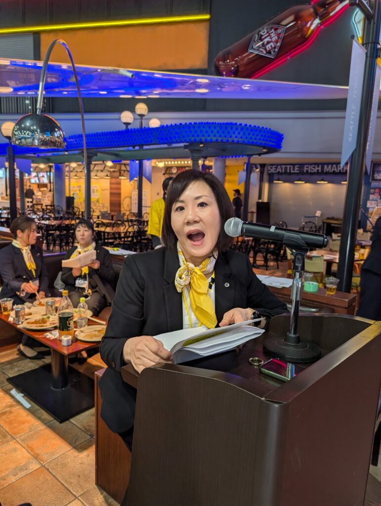 そして中締めのお時間。中締めは次年度会長のユカリさんから。これをもってR7年度の事業はすべて終了するので、4/1になった途端にR8へバトンタッチとなります。