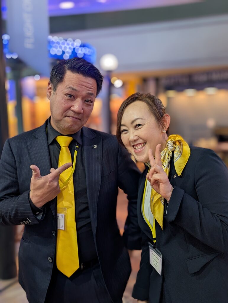 しかもみんなで黄色のスカーフとネクタイを準備し始め、「なんで私のはないのさー」とその仲良しさを羨ましく感じました。女性メンバーにいたっては髪型まで「夜会巻」に統一。サトミさんがみんなのセットしたんだって!
